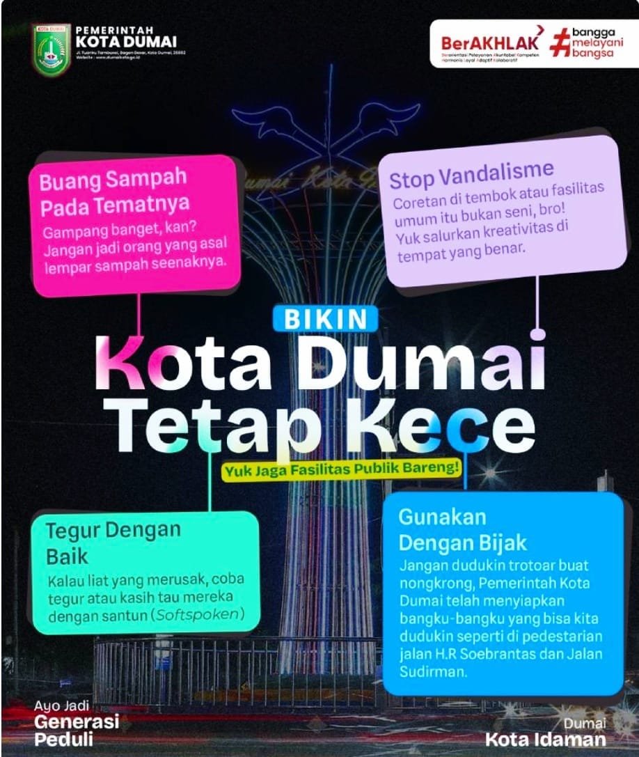 Gak perlu jadi superhero buat bantu jaga fasilitas publik. Mulai dari hal kecil, ini beberapa tips biar Dumai tetap kece: