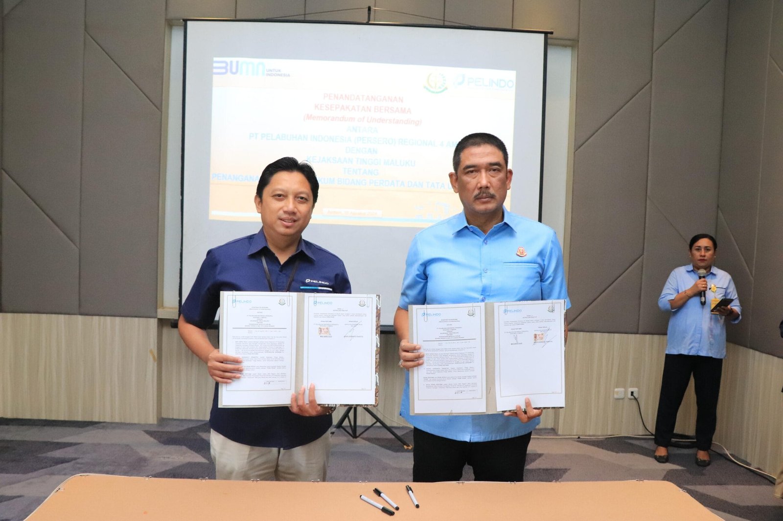 Penandatanganan kerjasama antara tersebut, dilakukan langsung oleh Kepala Kejaksaan Tinggi Maluku Agoes Soenanto Prasetyo S.H., M.H. dan General Manager PT. Pelindo (Persero) Regional 4 Ambon Akira Fauzi.