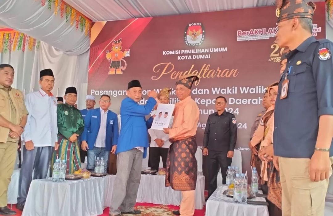 ”Kita tadi sudah menerima berkas pendaftaran pasangan bakal calon walikota dan wakil walikota Dumai atas nama Paisal-Sugiyarto,” kata Zulfan yang ditemui awak media, Selasa (27/8/2024) usai pendaftaran tersebut.