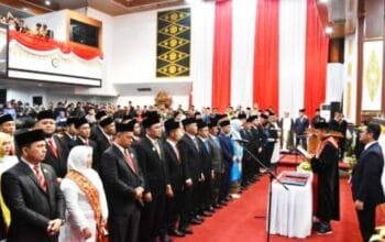 Pengucapan sumpah/janji dimulai dibacakan langsung oleh Ketua PN Kota Pekanbaru, Raden Heru Kuntodewo MH, dan diikuti oleh Ketua dan Wakil Ketua DPRD Pekanbaru.