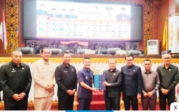 Kemudian dilanjutkan dengan penandatanganan dan penyerahan SK Gubernur Riau kepada Ketua dan Wakil DPRD Pekanbaru yang baru saja mengucapkan sumpah/janji.