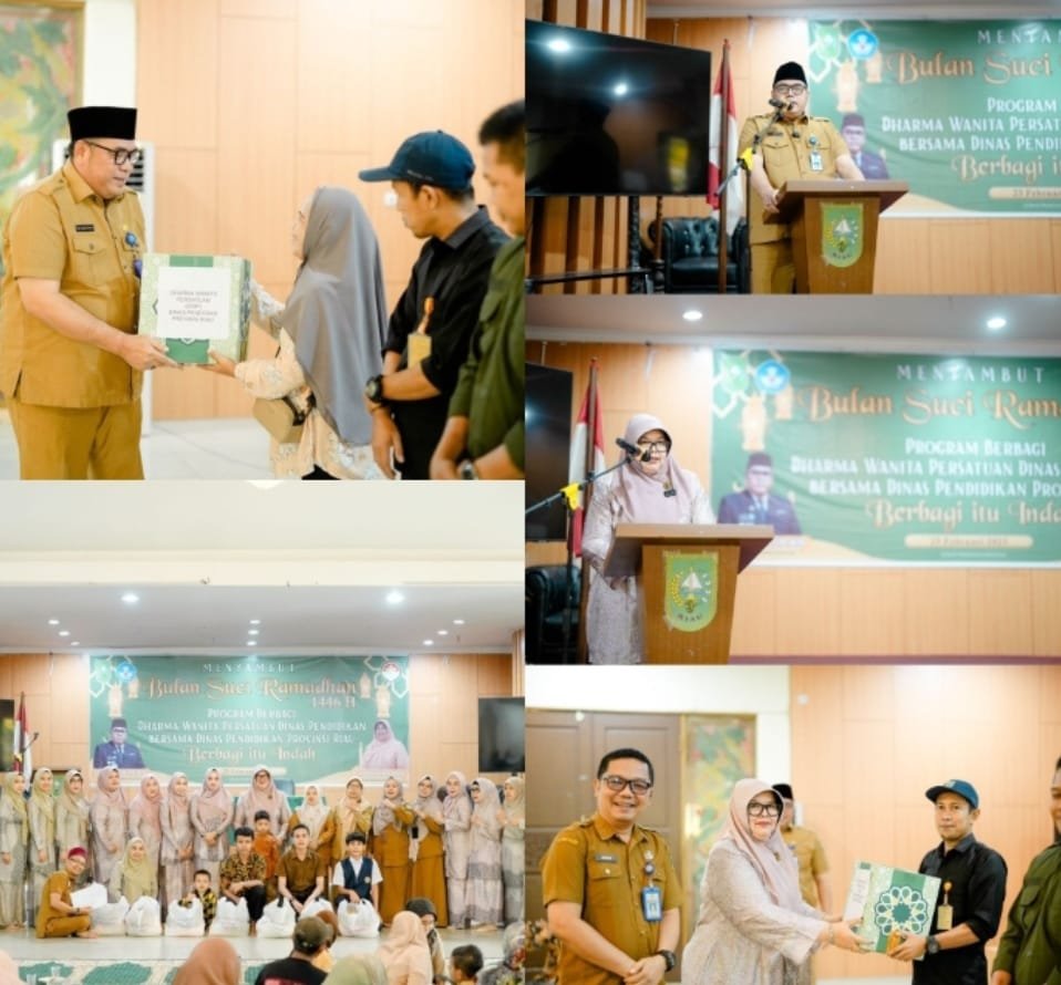 Hj. Yuli Arnita Edi Rusma Dinata Menyambungkan bahwa kegiatan Dharma Wanita Persatuan Dinas Pendidikan dengan Tagline ” Berbagi Itu Indah ” hari ini lebih kurang 200 paket sembako kami salurkan untuk para anak yatim dan kurang mampu di lingkungan Dinas Pendidikan Provinsi Riau, Tenaga THL, Cleaning Service, Sopir, Sekuriti dan lainnya.” Sebut Ketua DW Persatuan Disdik Hj. Yuli Arnita Edi Rusma Dinata.