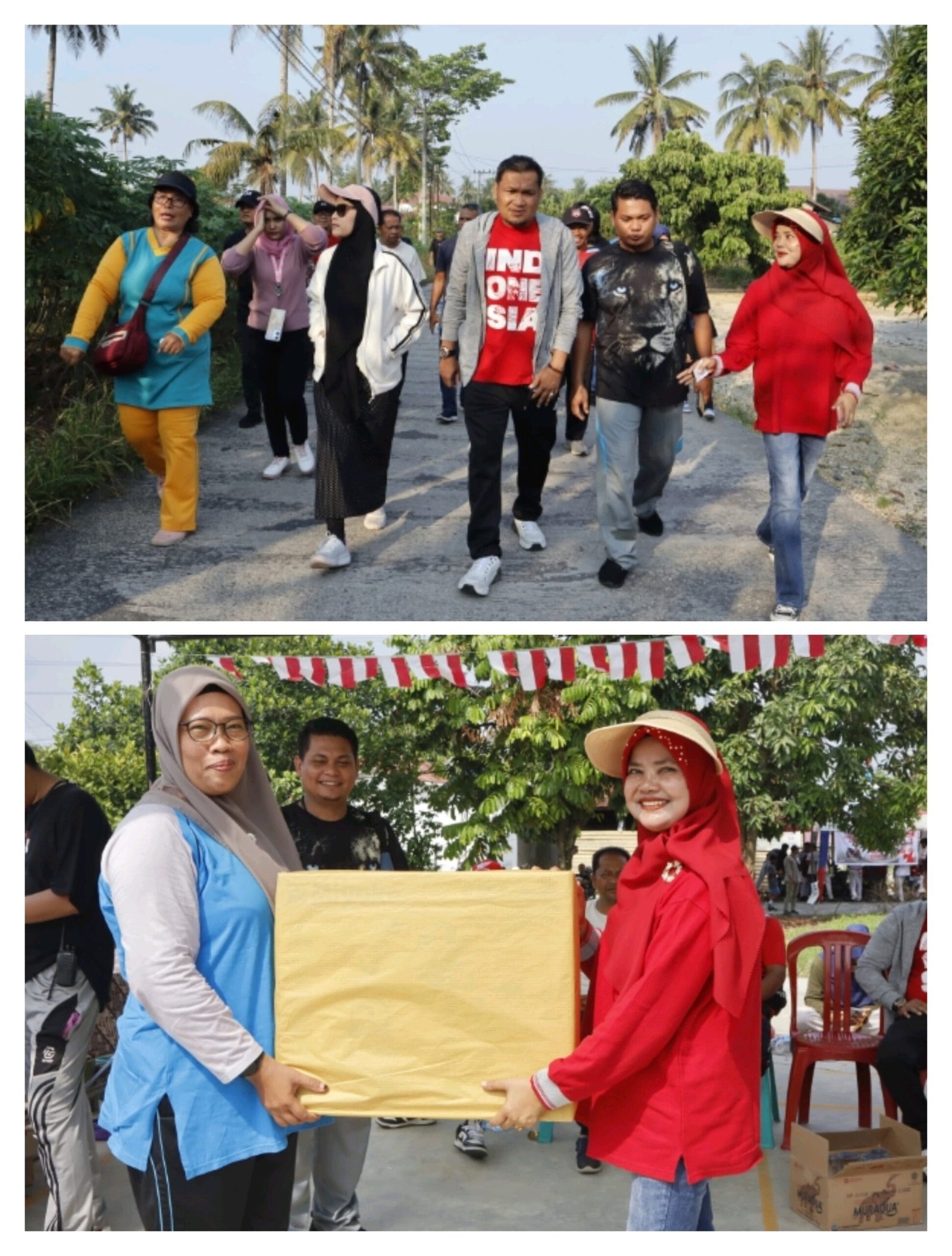 60BERITA.ID | PEKANBARU – Plt. Camat Kulim Fajri Adha,S.STP, M.Si bersama Ketua TP PKK Kecamatan Kulim Elvira Dian Putri, S.P menghadiri kegiatan gerak jalan santai dalam rangka menyemarakkan HUT RI yang ke-80. Minggu, (10/08/25).