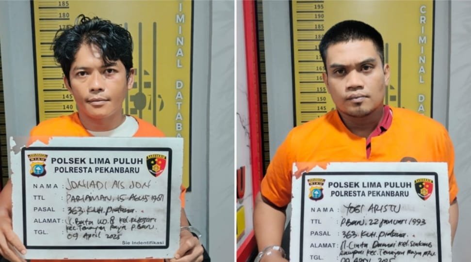Dua pelaku yakni YA (31) yang merupakan honorer Satpol PP Provinsi Riau dan J alias Jon (43), diringkus dalam pengungkapan tersebut. Keduanya diketahui telah membobol sebuah rumah dan mencuri berbagai perabotan di dalamnya senilai Rp100 juta.