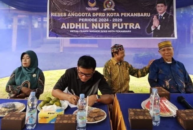 60BERITA.ID | PEKANBARU || Ketua Fraksi NasDem DPRD Kota Pekanbaru, Aidhil Nur Putra SH, turun menjumpai masyarakat dalam kegiatan reses di Jalan Kapur, Kelurahan Kampung Baru, Kecamatan Senapelan, Selasa (11/11/2025).Dalam kesempatan itu, anggota dewan dari Daerah Pemilihan (Dapil) Senapelan – Payung Sekaki ini menyerap langsung berbagai usulan dan aspirasi warga RT 02 RW 03 Kelurahan Kampung Baru dalam masa reses kesatu tahun sidang 2025/2026.