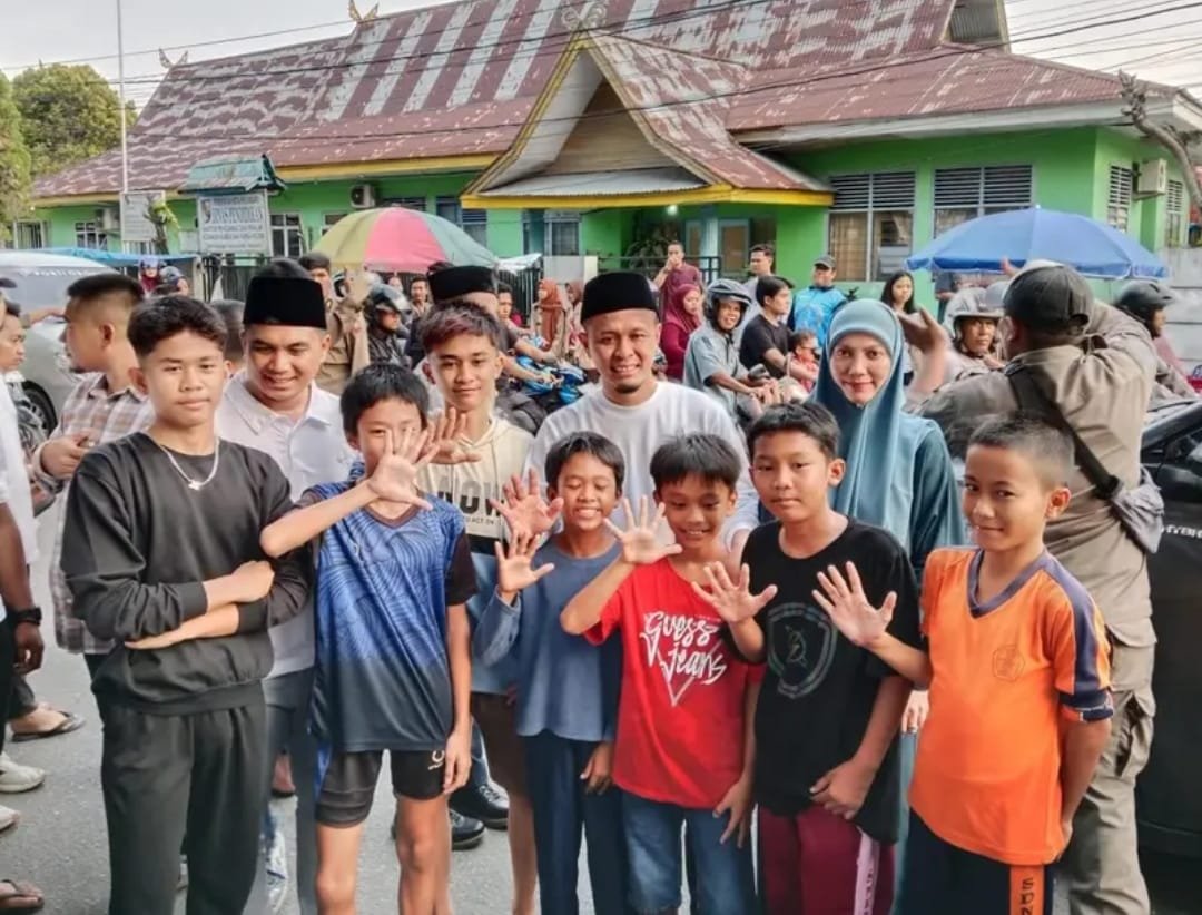 60BERITA.ID |PEKANBARU – Walikota Pekanbaru Agung Nugroho didampingi Sekretaris Daerah kota (Sekdako) Pekanbaru Zulhelmi Arifin berbagi Takjil di Jalan Sekolah, Kelurahan Meranti Pandak, Kecamatan Rumbai, kota Pekanbaru, pada Sabtu (15/03/2025) sore.